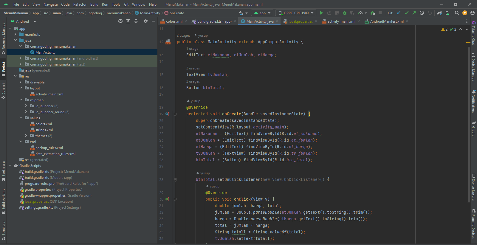 PesanMakanan 06 May 2024 Skema: Junior Mobile Programmer Aplikasi untuk memesan makanan beserta melihat jumlah harga makanan